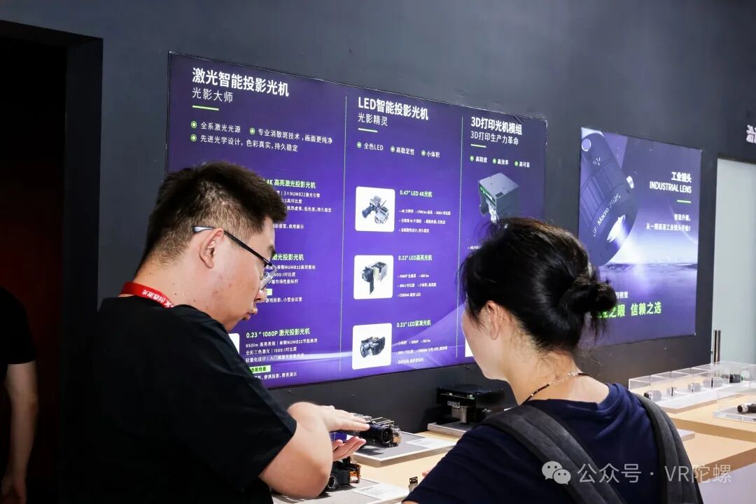 在广大展商中,歌尔光学带来一系列AR/VR光学新品,从刷新行业记载的碳化硅刻蚀光波导,到叩响全彩AR眼镜普及之门的超小光机模组,再到单眼4K的VR/MR Pancake决策,三色激光投影光机等连接决策,毫无疑问地成为了本届展会的焦点之一。