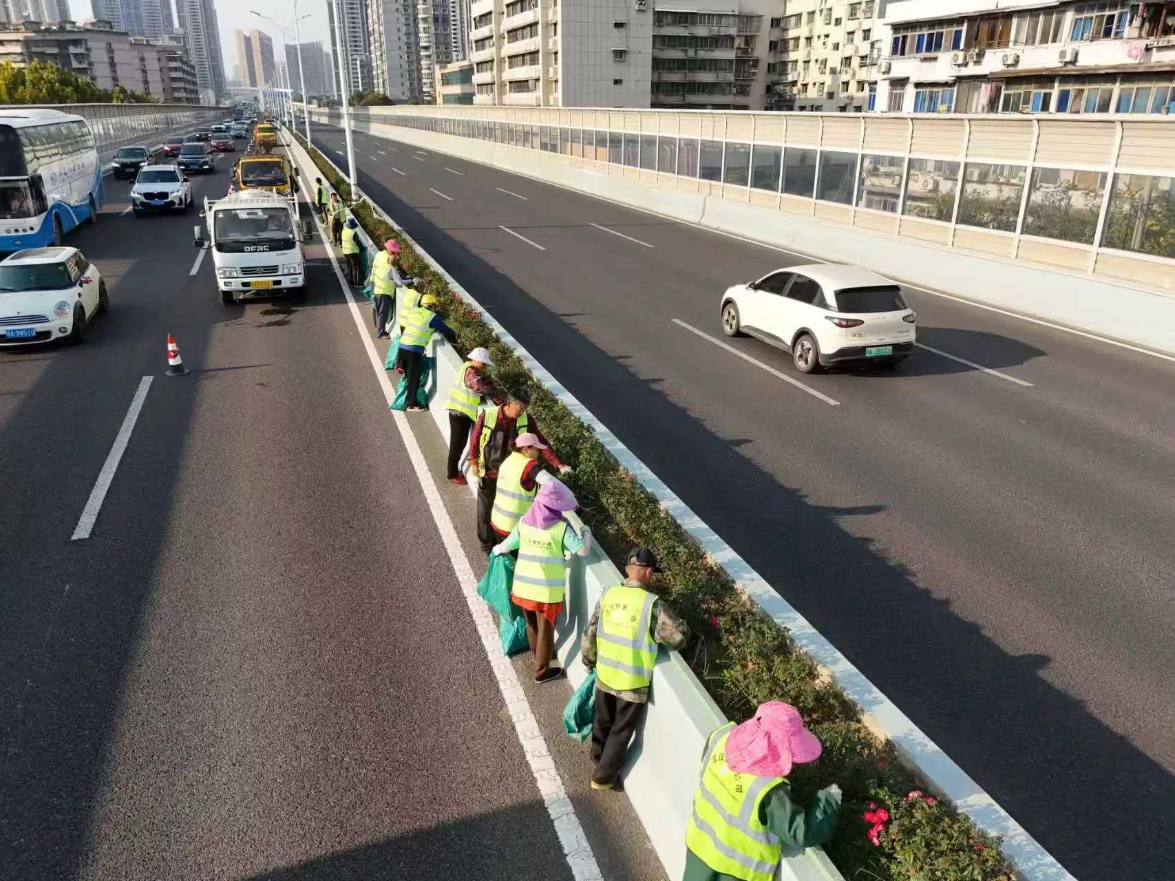 11月4日下昼,在机场二通谈姑嫂树路段,江汉区园林绿化队的养护工东谈主们正环环相扣地对沿线花园进行养护。与以往不同的是,在他们功课区域的后方,一辆形状橙黄、象征精明标防撞缓冲车紧随看管。车辆顶部的警示灯不断明慧,时间教导着后方车辆细心避开。